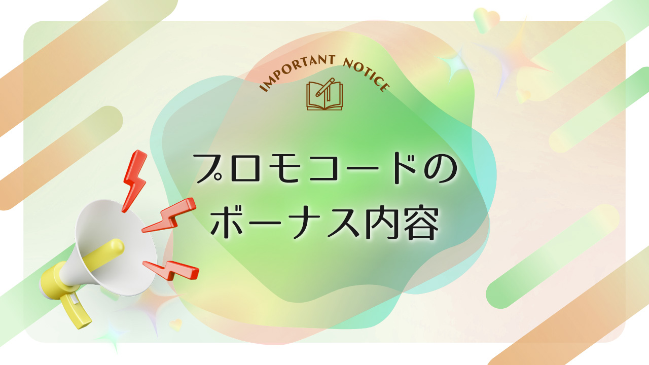 ただいま掲載中のプロモーションコードで入手いただけるボーナス内容についてのお知らせです。